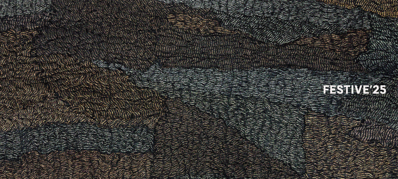 The saree is imagined as a canvas, a field where geometry and colour unfold freely. Handcrafted in natural dyes, each piece moves beyond convention. The patterns flow, unbound by borders or pallav — a space for expression rather than tradition.