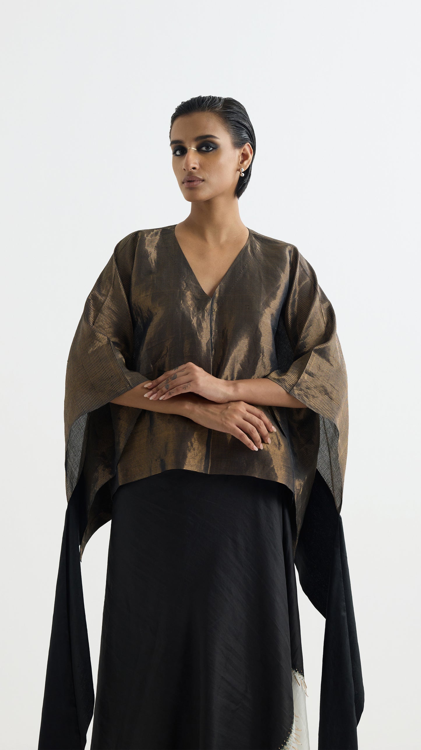 Metallic Kaftan Blouse - Black