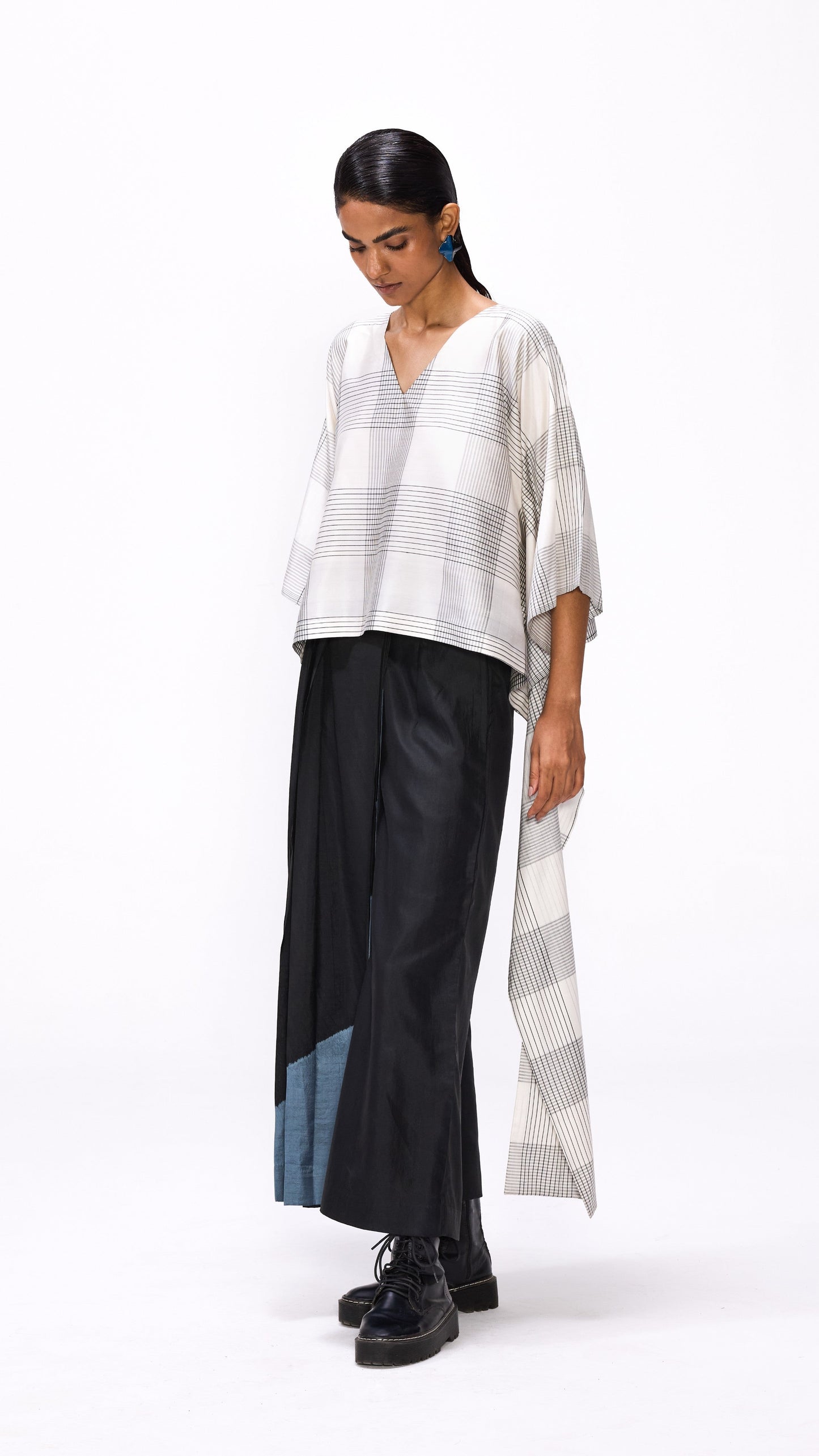 Our signature kaftan blouse in grid handwoven silk. Freesize, elegant & stylish, this is a versatile pick to pair with your existing sarees or ours.It is lined for a comfortable fit and longevity.