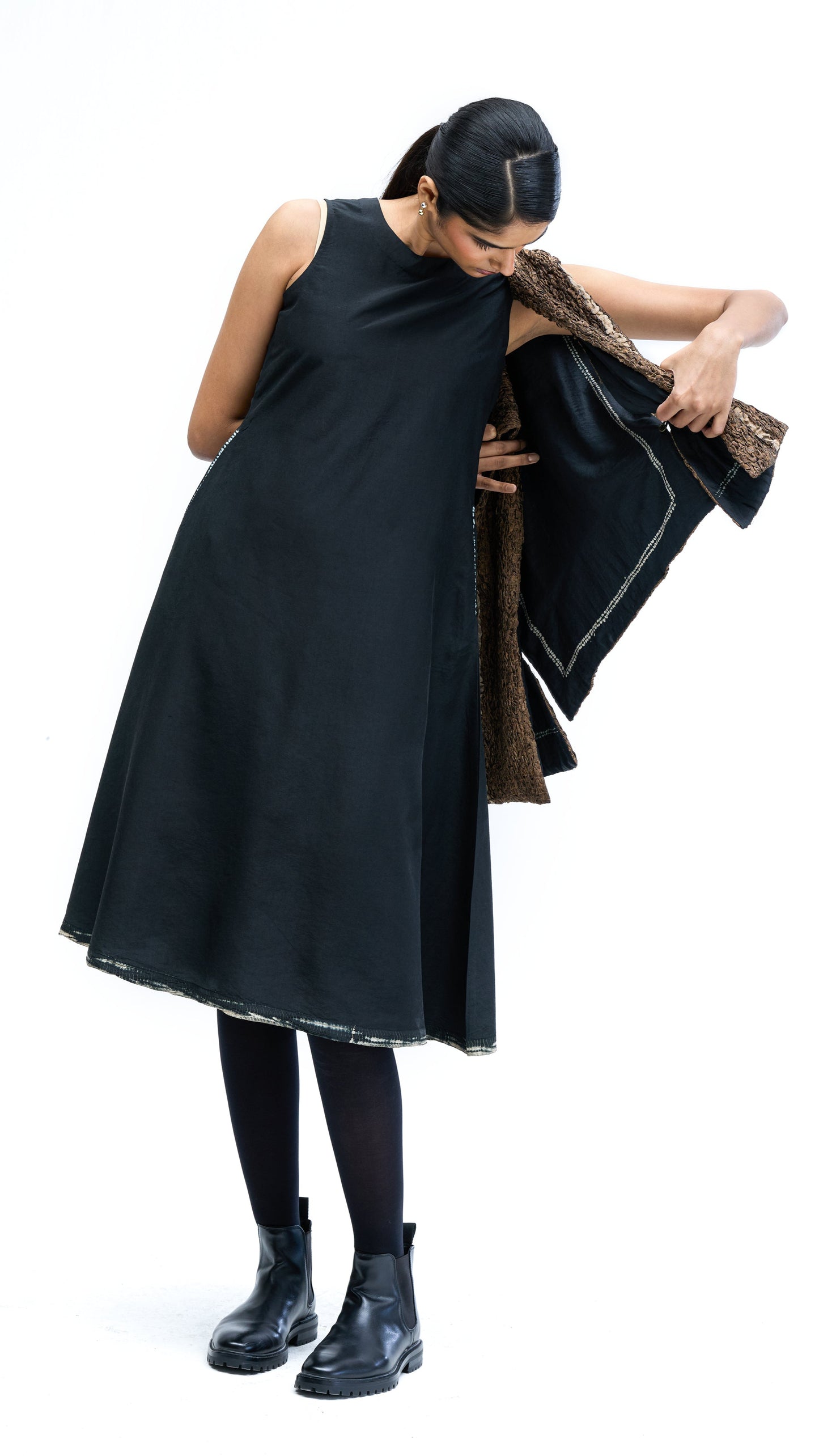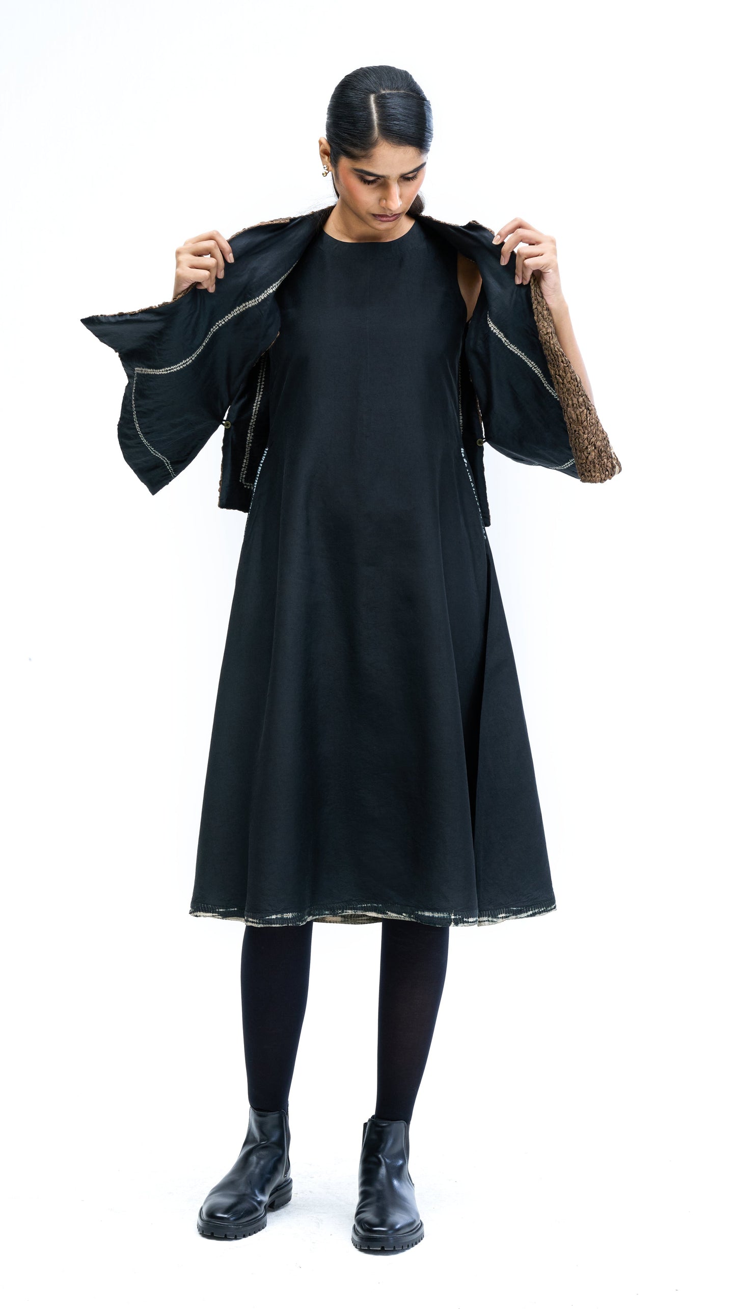 Solid Dress - Black-Beige