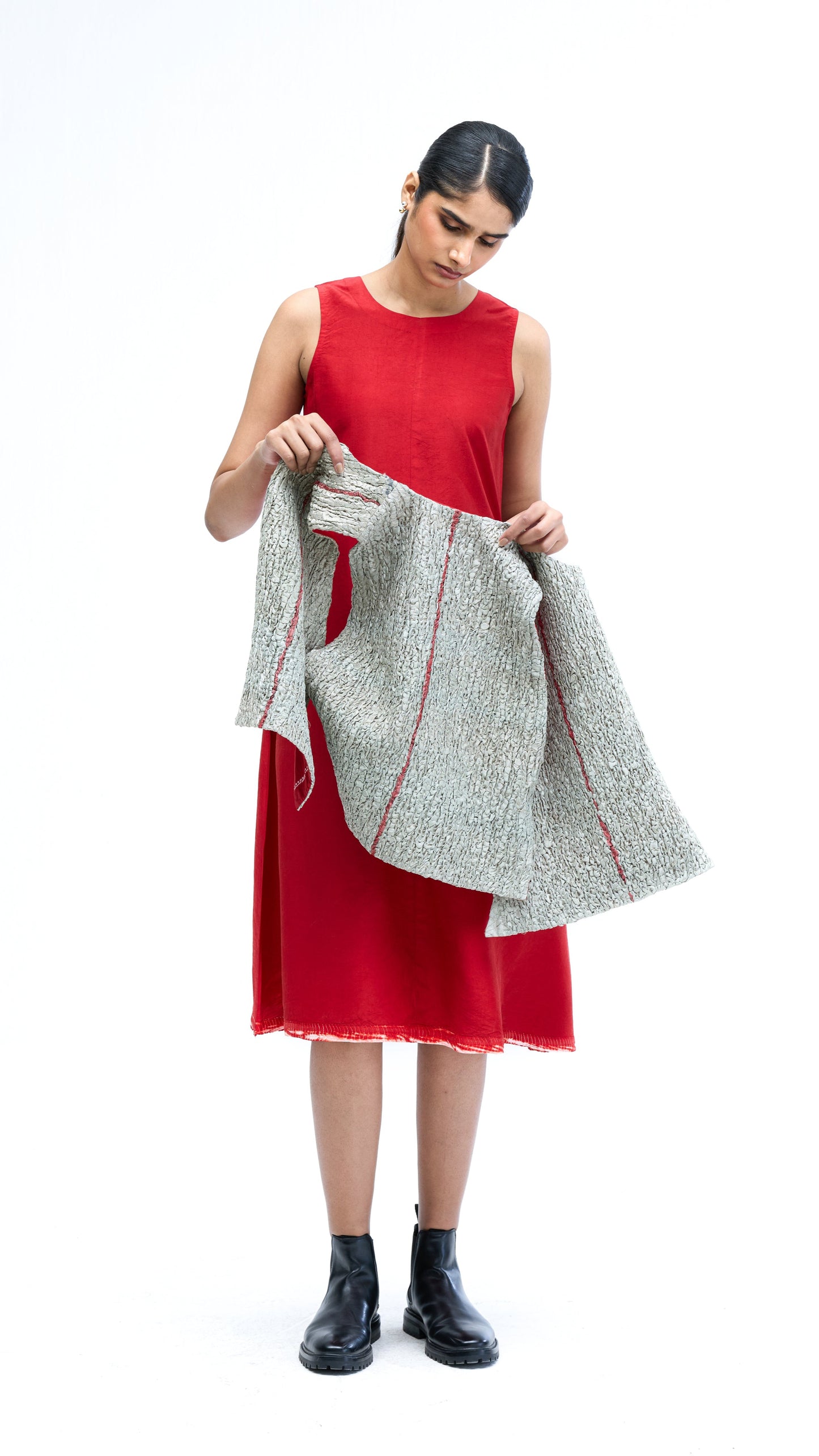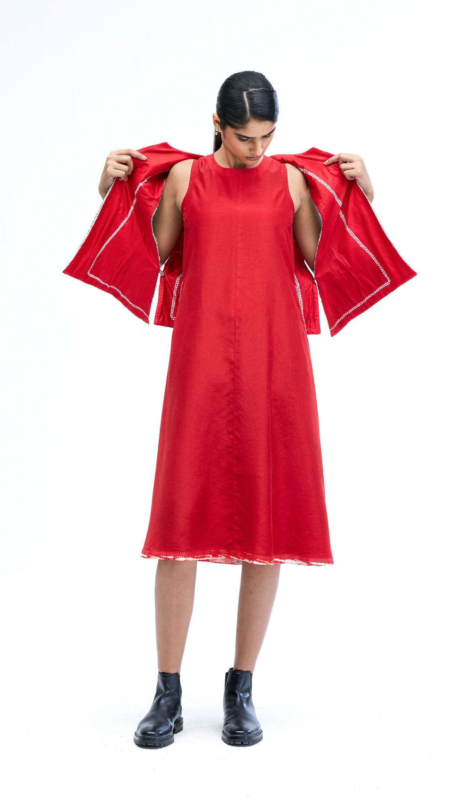 Solid Dress - Red-White