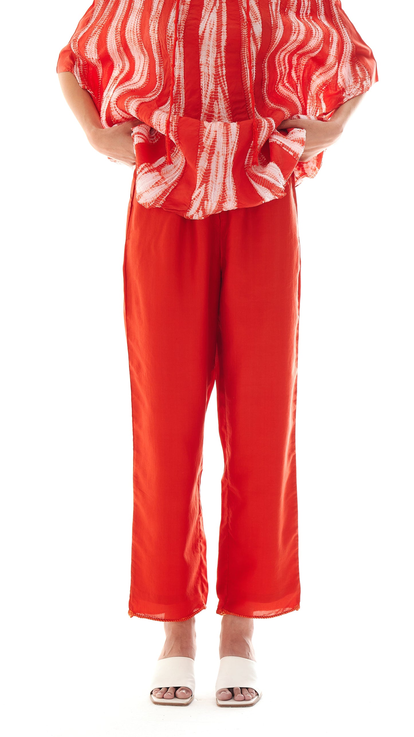 A hem detail created using guntai shibori introduces a subtle root-like pattern at the base of the garment.