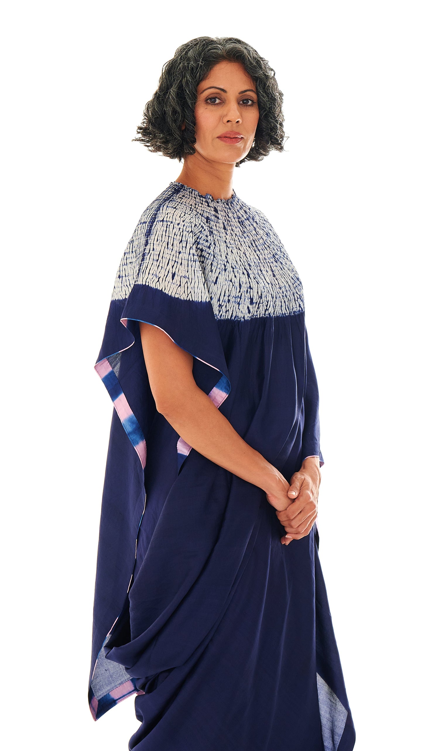 The colours you see on screen may appear substantially different from the actual colours of the product. This is due to the variation in colour reproduction in camera and screen. Dry clean only, however shibori should be capped to retain the texture.