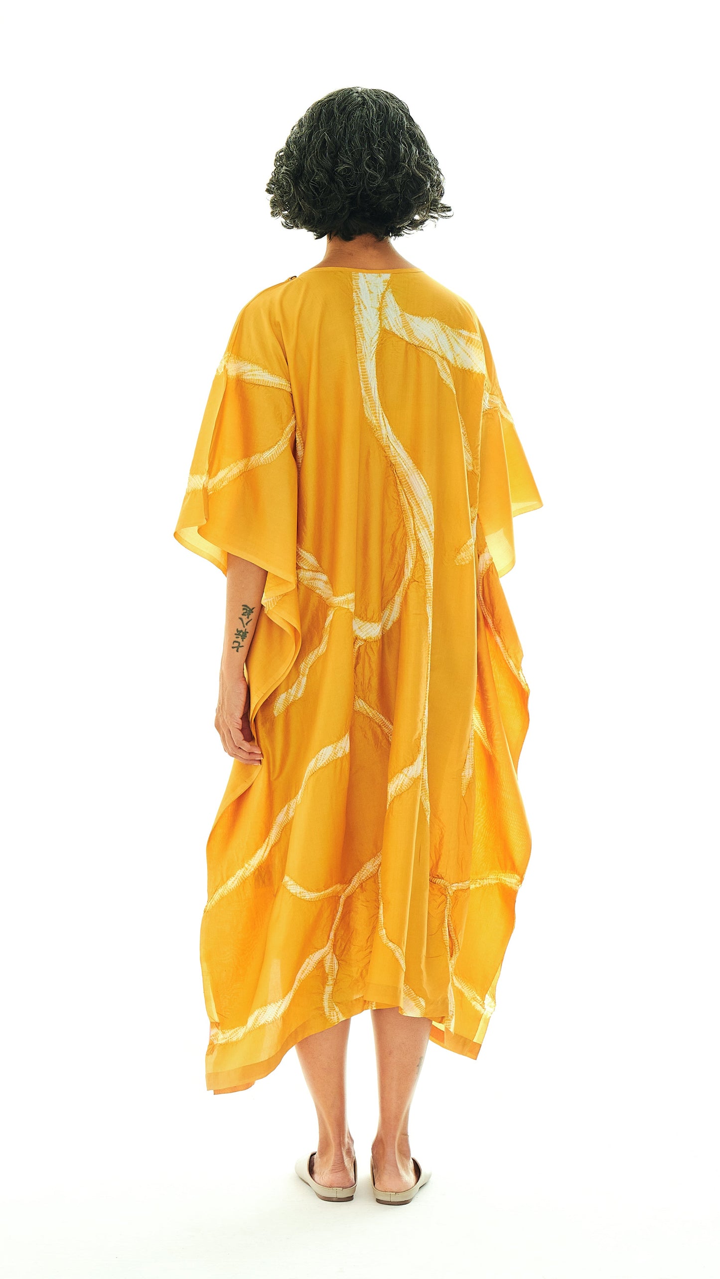 Cut in a light, airy silhouette for summer, the kaftan features a gentle slit for ease of movement and a root-inspired button detail.
